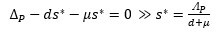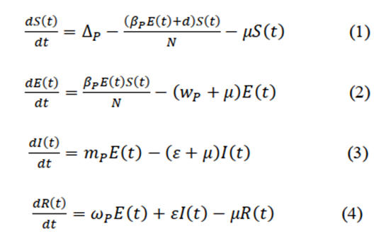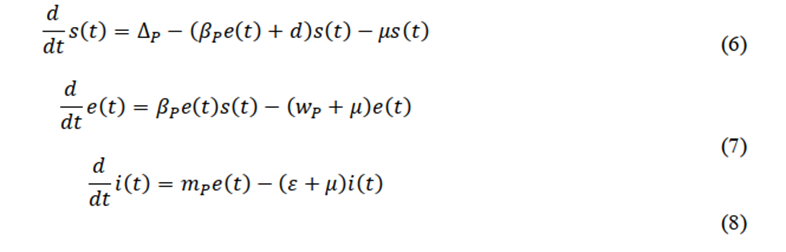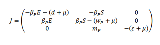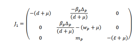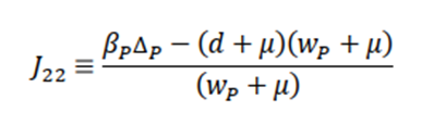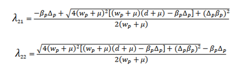 From this expression, the equilibrium point is reached when λ1 < 0 i.e., when (d+μ)(wp+μ)>βpΔp